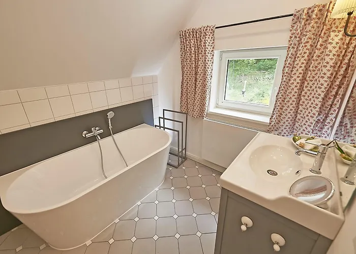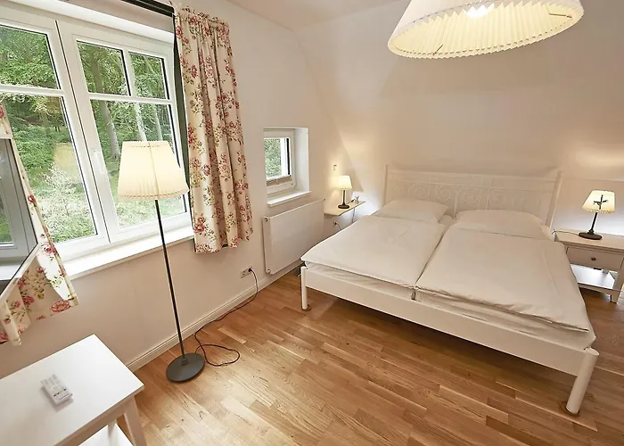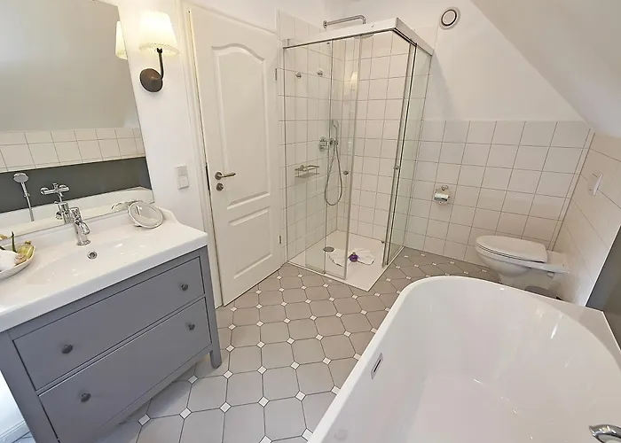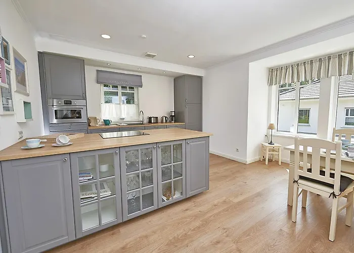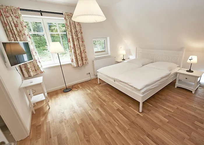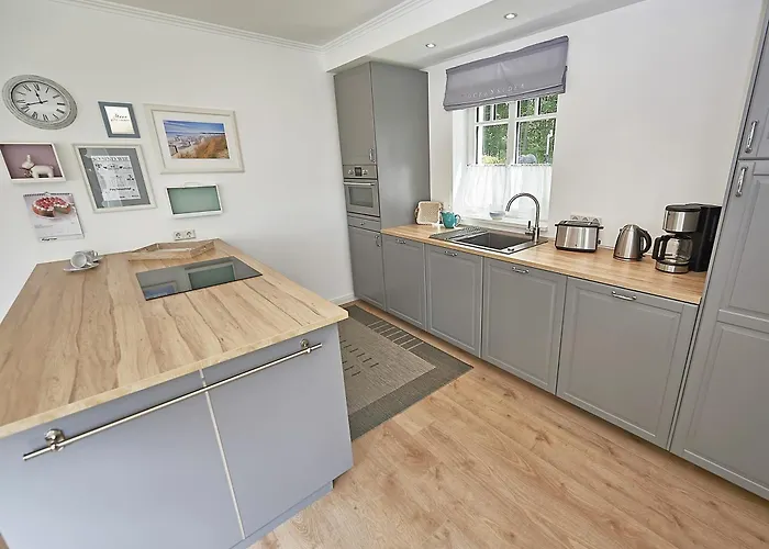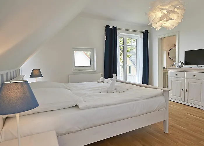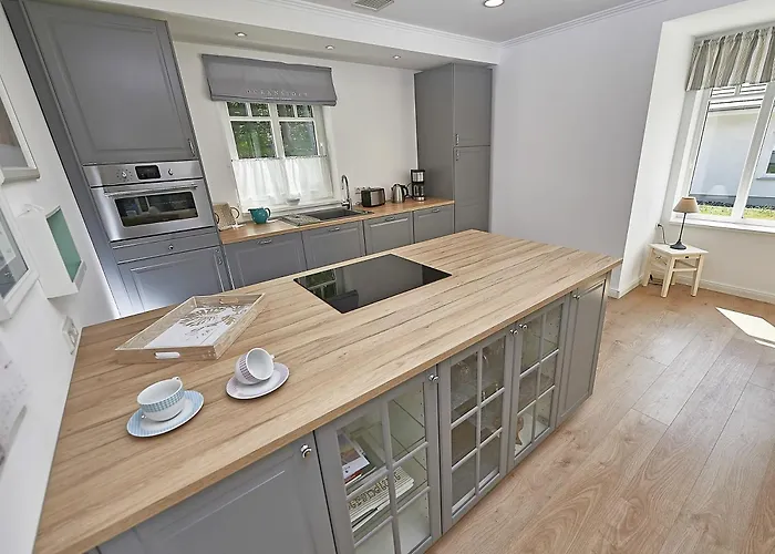 The spacious Ferienhaus "Strandlust" In Sellin Mit Kamin, Terrasse, Garten lies only 1.8 km from Sellin Pier. The nearest beach is approximately a 25-minute walk away. Landmarks near Ferienhaus "Strandlust" In Sellin Mit Kamin, Terrasse, Garten include Ostseebad Sellin, which is located merely 0.6 km away.